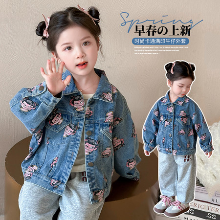 女童牛仔外套 女宝宝满印印花牛仔外套 春款爆款